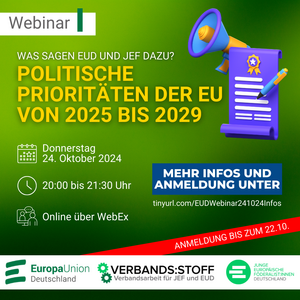 Verbandsstoff Webinar „Politische Prioritäten der EU von 2025 bis 2029 - Was sagen EUD und JEF dazu?“
