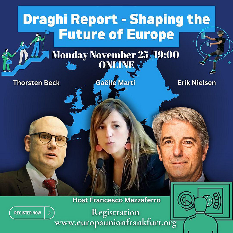 Am 25.11.2024 um 19.00 Uhr findet ein Online-Expertengespräch über den Bericht zur Zukunft der Wettbewerbsfähigkeit der Europäischen Union, den sogenannten Draghi-Report, statt. Das Expertengespräch wird in englischer Sprache geführt und ist eine Kooperationveranstaltung mehrerer Kreis- und Landesverbände der Europa-Union und ihrer Partnerverbände aus Frankreich und Italien.